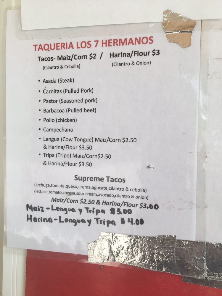 Introducing the Menu at Taqueria Los 7 Hermanos